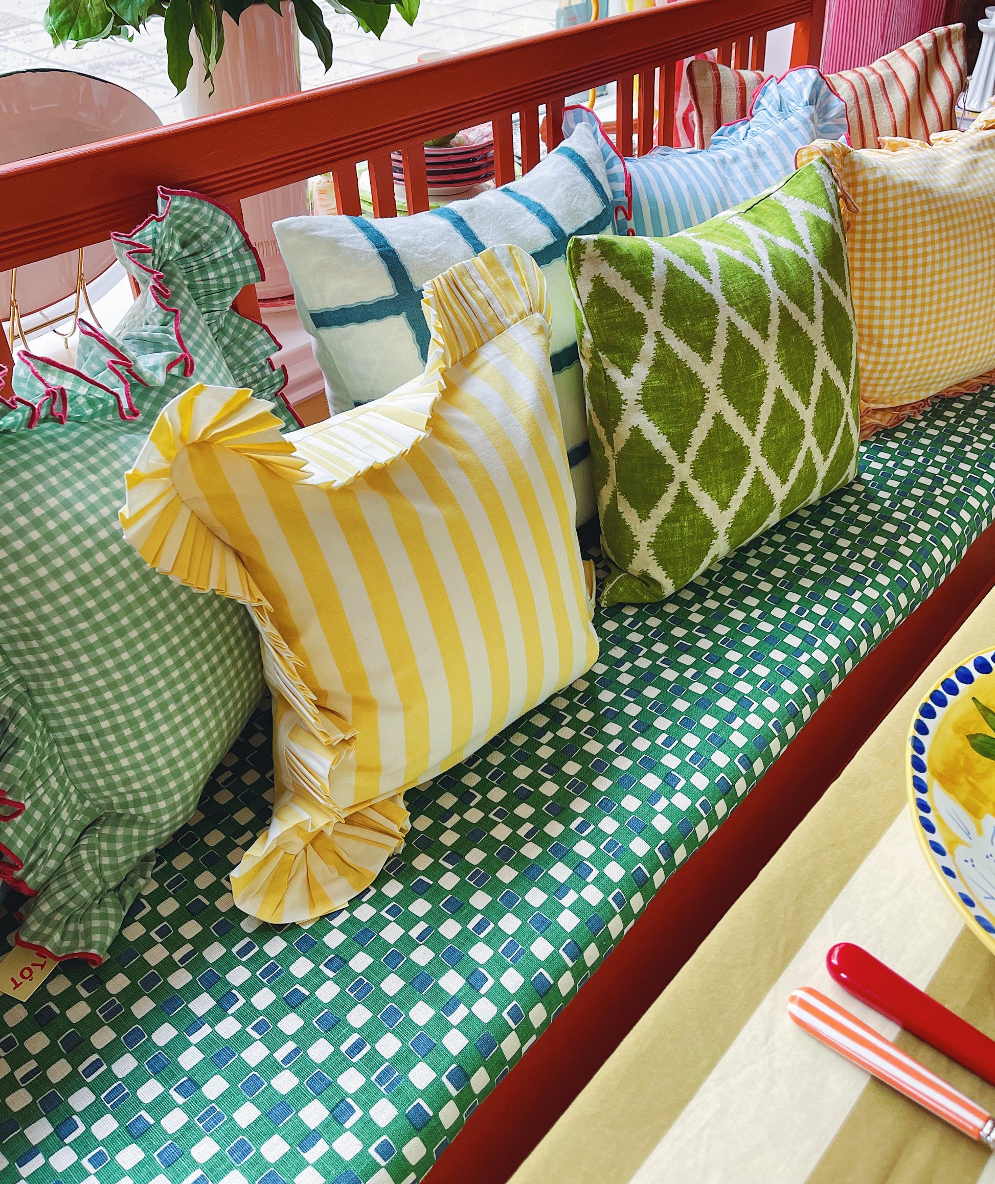 Striped cushion cover block-printed by hand using traditional butti techniques and ancient craftsmanship from Jaipur. Made in 100% cotton. Dimensions: 40x40cm.
